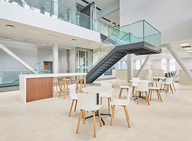 普段は社員食堂として、月1回の全体朝礼や納涼会・